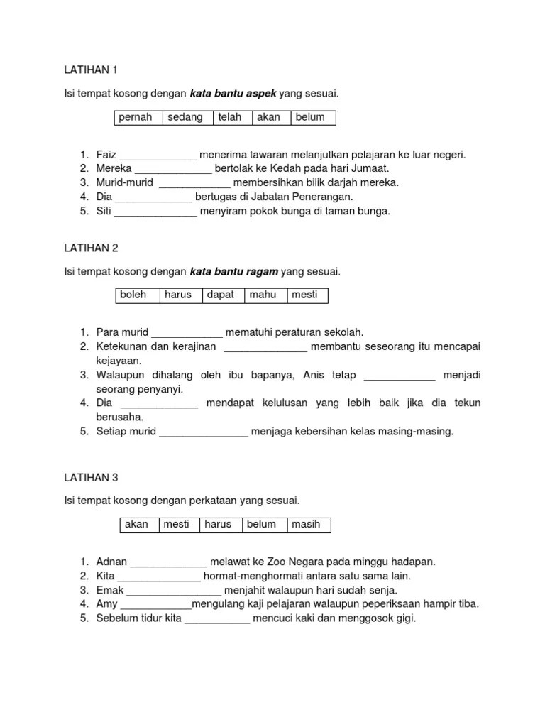 Latihan Kata Bantu Aspek Dan Ragam / 1